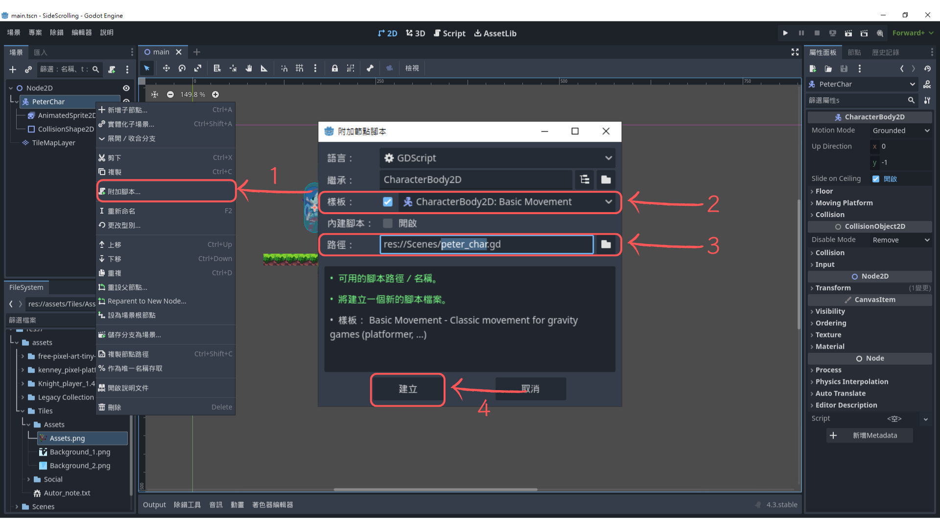 res://Scenes/peter_char.gd) - 點擊「建立」!