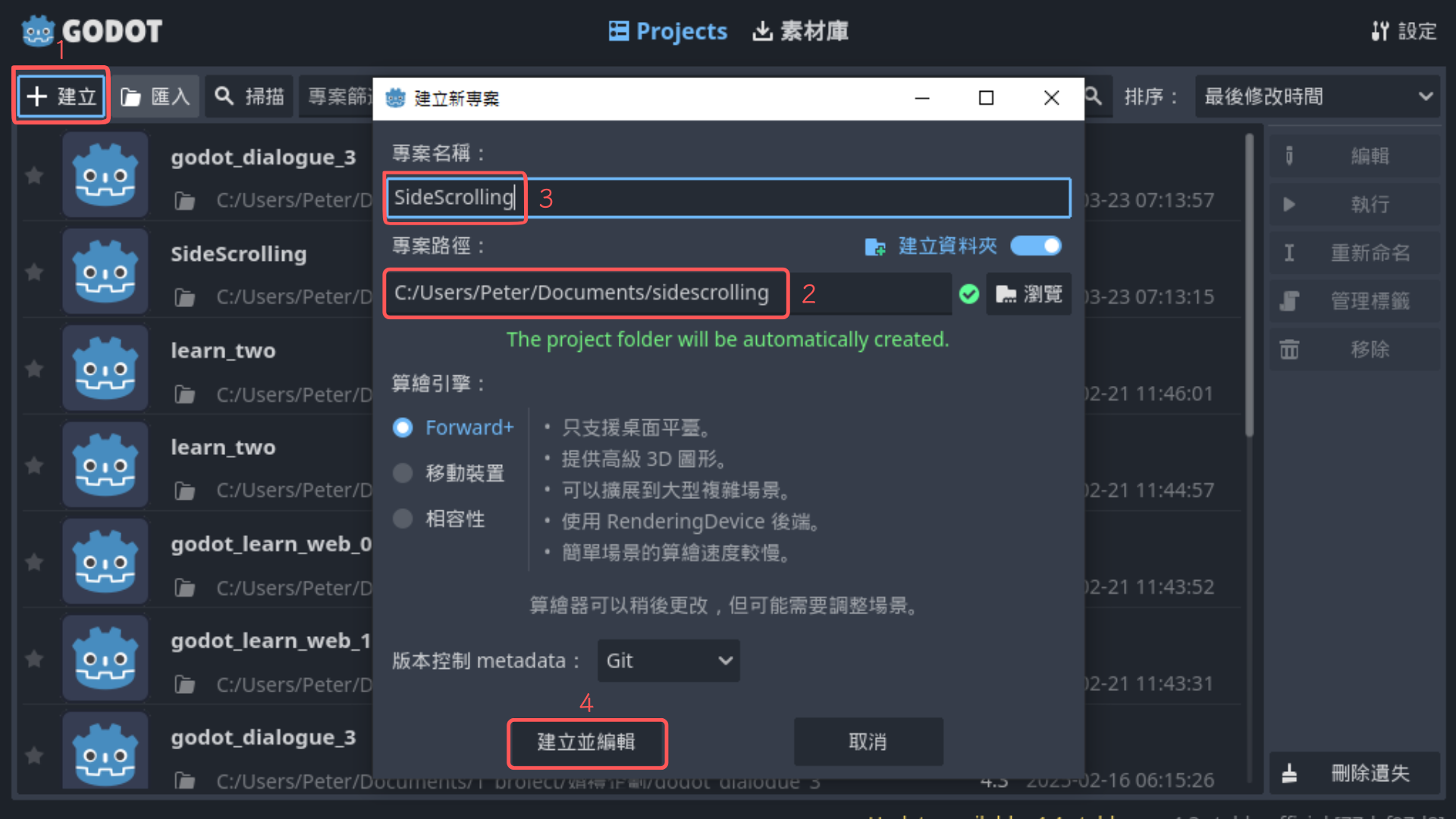 SideScrolling)。 - 點下「建立並編輯」,開始開工!