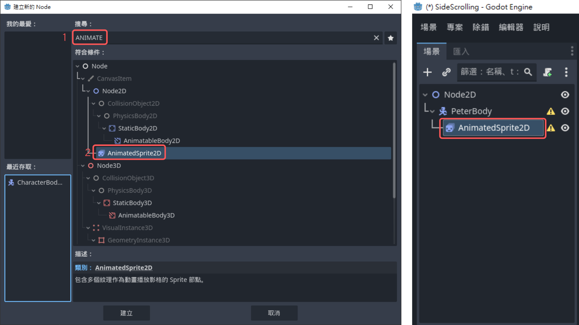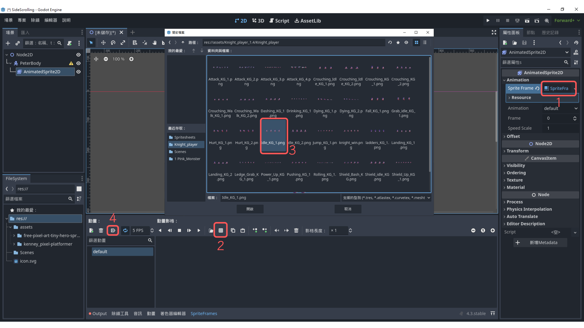 Step 4:讓角色動起來!加入 AnimatedSprite2D