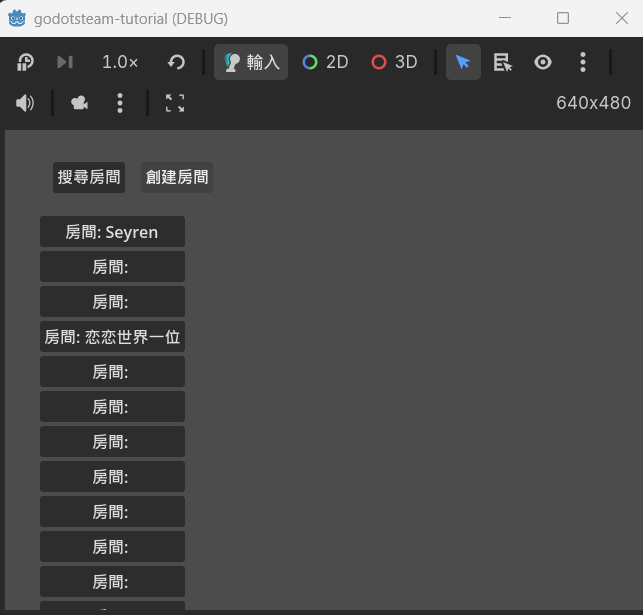 lobby_list_container.add_child(btn)當搜尋結果回來 (_on_lobby_match_list),我們用 for 迴圈顯示出所有房間。