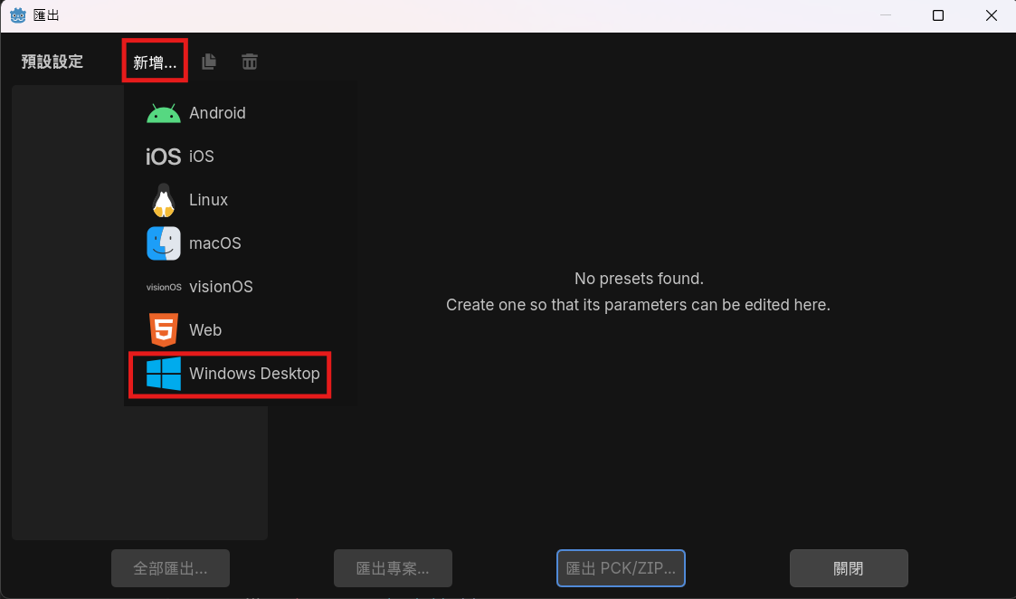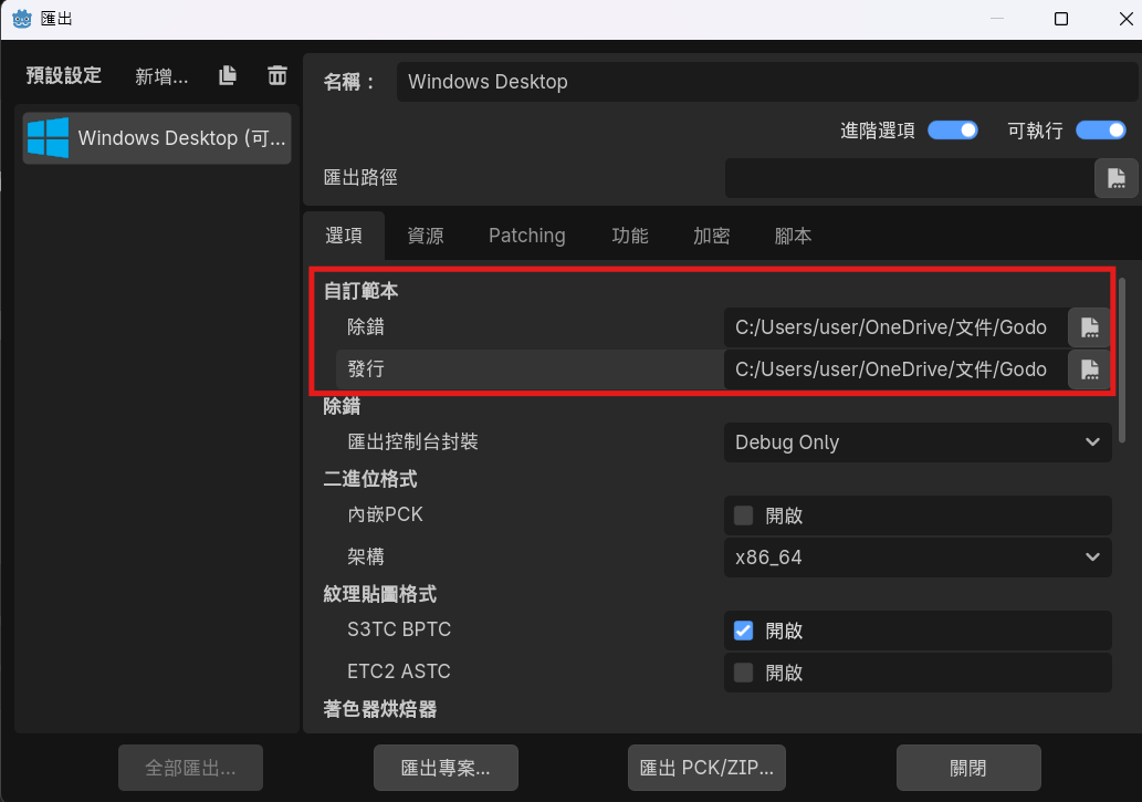 - 因為我們使用的是 GodotSteam Pre-compiled 版本,匯出時不能使用 Godot 內建的模板。請確認你已下載對應版本的 Export Templates(下載傳送門)。